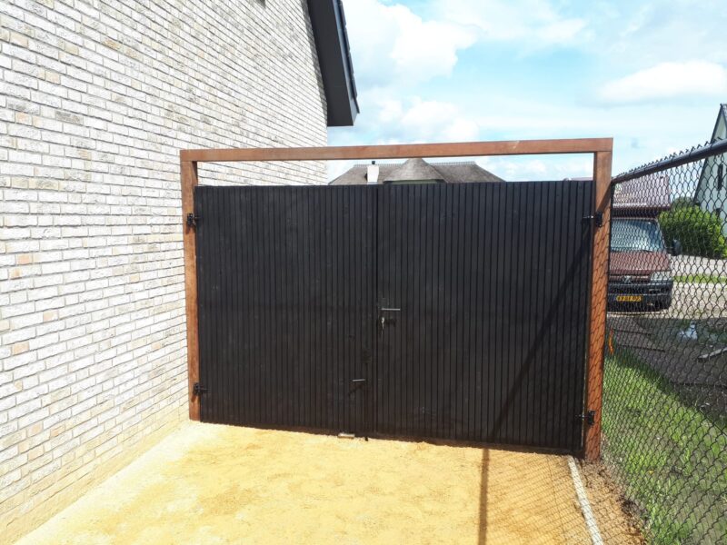 Dubbele Tuindeur Triple profiel diverse kleuren en houtsoorten 200 t/m 400cm, hoogte 155>200cm “Horizontaal of verticaal”