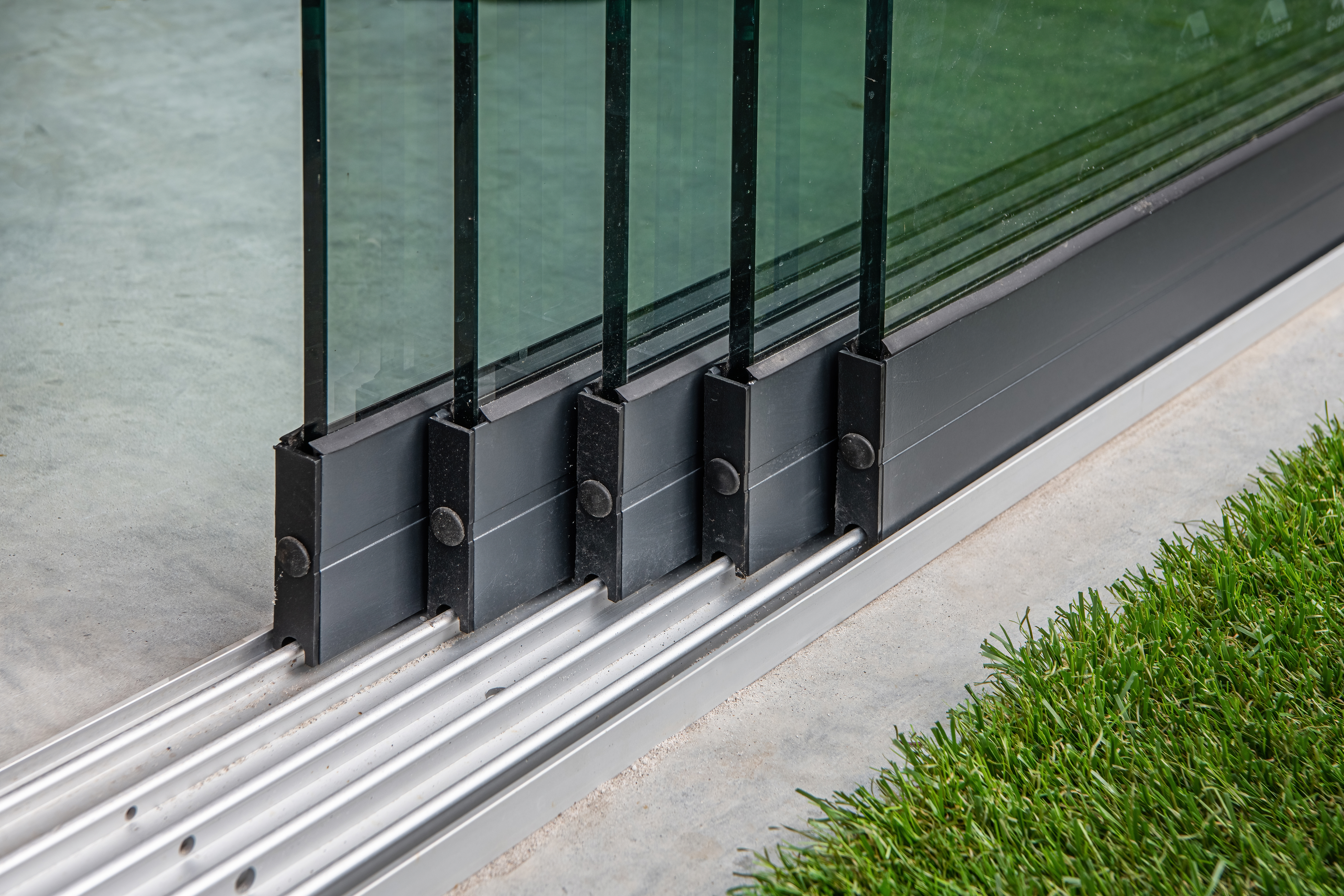 Glazenschuifwandset – Inbouwhoogte 213-217cm – Paneelbreedte 104 cm – Breedte tot 500 cm – 5-sporig zwart RAL 9005