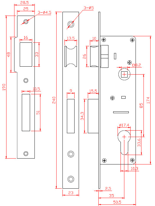 • Grootte slotkast: 51x174mm