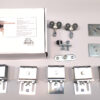 - Inclusief: 5x verstelbare muurbevestigingsplaat voor geleider 33mm, 2x viervoudig wielenblok M8 met open lager, 1x vaste geleidingsrol M8 met grondplaat, 1x eindstop 61x22x3mm, 2x verstelbare bevestigingsplaat 50-65mm, 1x complete slotenset RVS met deurkruk en rozetten